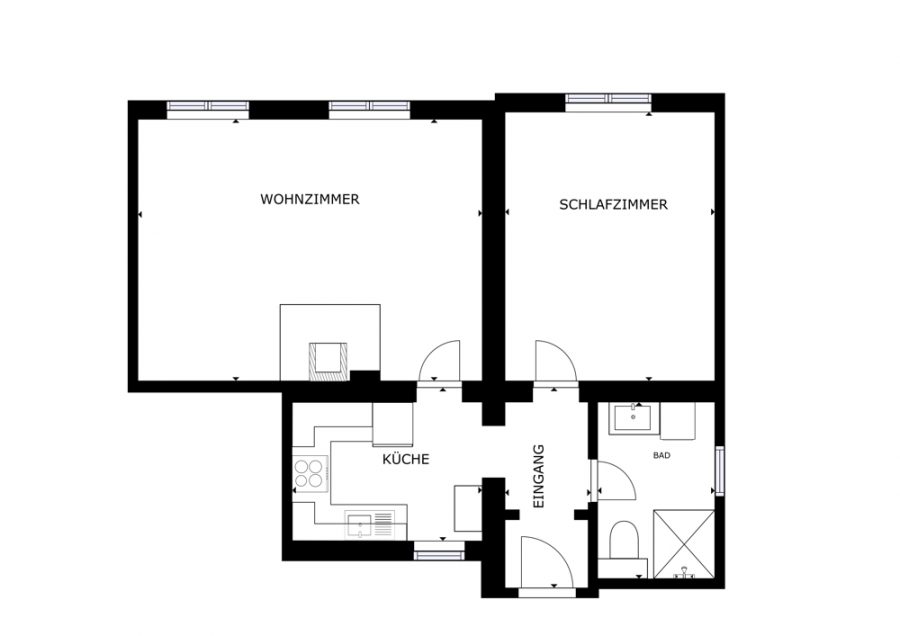 - Ca. 52 m² mit 2 Zimmern, Flur, Küche und modernem Bad