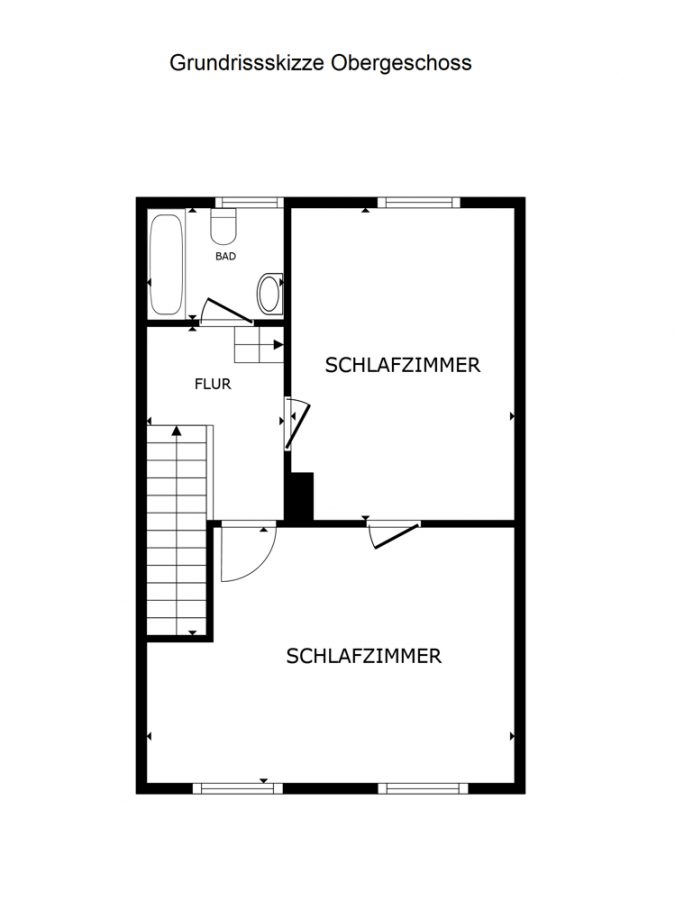 Im Erdgeschoss stehen Ihnen zwei helle Zimmer sowie eine separate Küche zur Verfügung. Das Obergeschoss beherbergt zwei weitere Zimmer sowie ein Badezimmer.